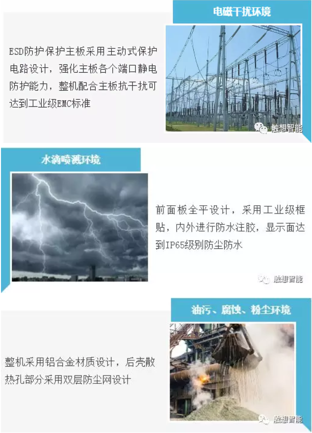 觸想智能在原材料選型上非常嚴(yán)苛,采用國際知名品牌工業(yè)級顯示芯片的設(shè)計,嚴(yán)格使用工業(yè)級耐壓器件進(jìn)行貼片,保證達(dá)到工業(yè)級寬壓標(biāo)準(zhǔn);產(chǎn)品整機(jī)利用綠色環(huán)?;脑O(shè)計,增加抗干擾元器件、抗EMI材料涂層等設(shè)計方案。為觸控自動化設(shè)備產(chǎn)品提供最核心的硬件設(shè)計,從根本上解決了高負(fù)荷穩(wěn)定運(yùn)行的要求。