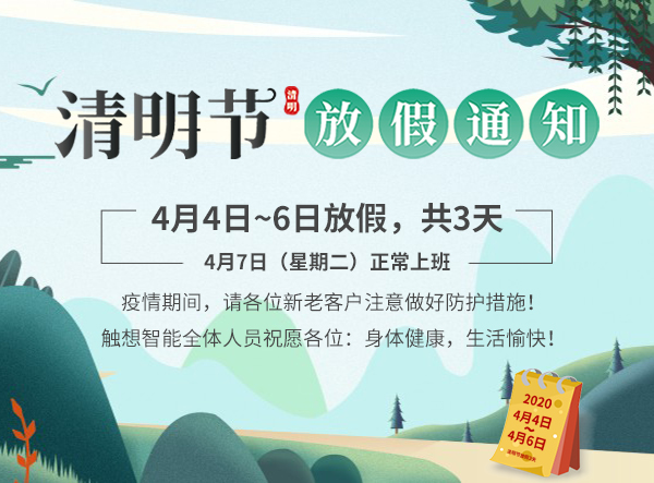 觸想智能2020年清明節(jié)放假通知