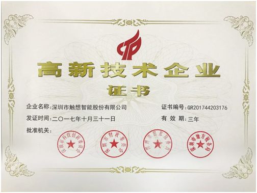 觸想智能順利通過國家高新技術企業(yè)證書
